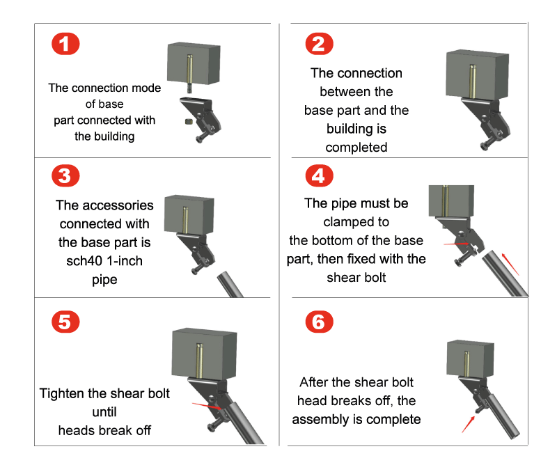 • Size : One size fits braced pipe up to 8" with M12 bolt hole for structure.