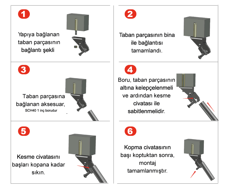 • Boru baglantı bileseni olan yapısal baglantı elemanı ile birlikte kullanılır ve destek boru elemanı ile birlestirildiğinde güçlü bir uygulama